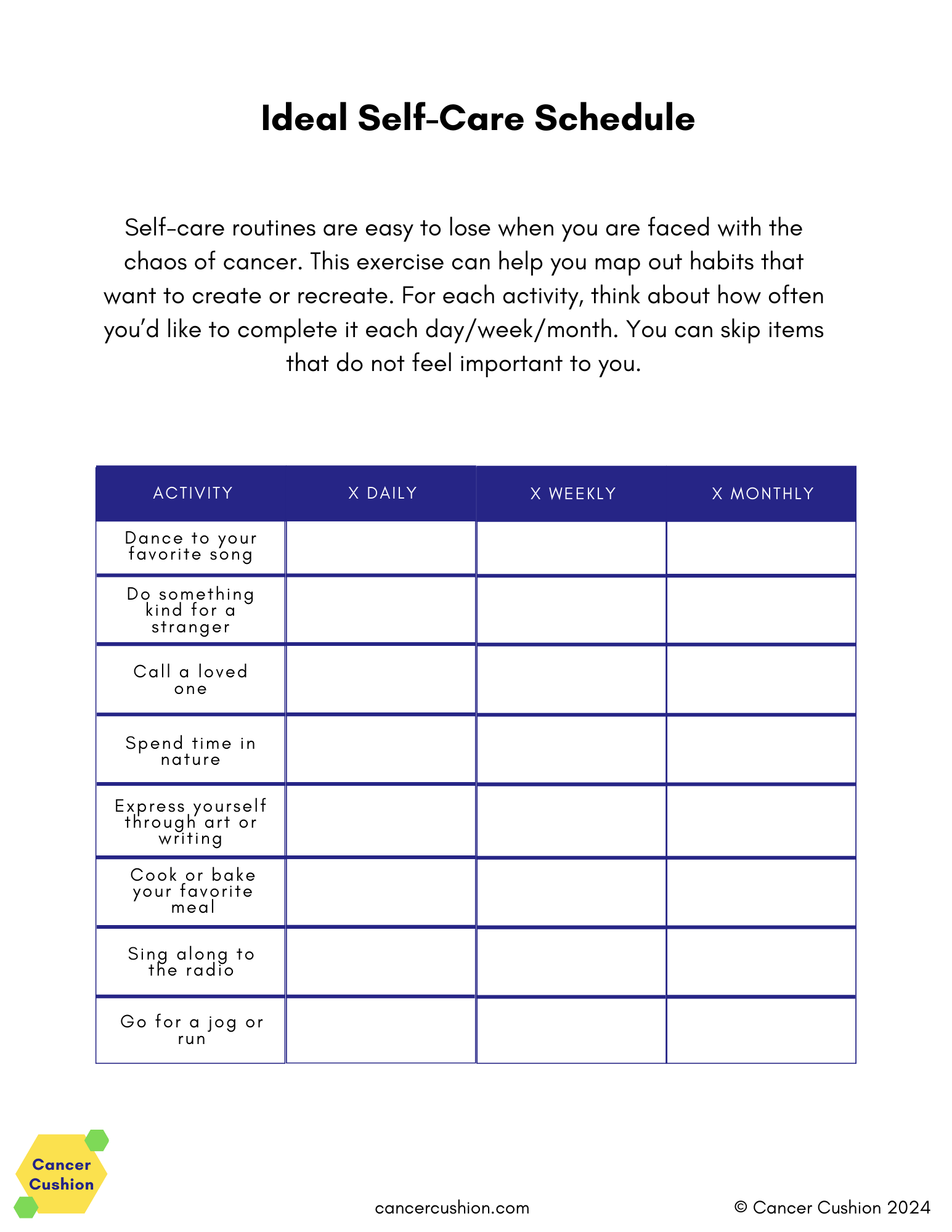 These handouts contain a 10-15 minute exercise to support your self-care goals. Identify which activities are most important to you and small changes you can make to add them into your life.