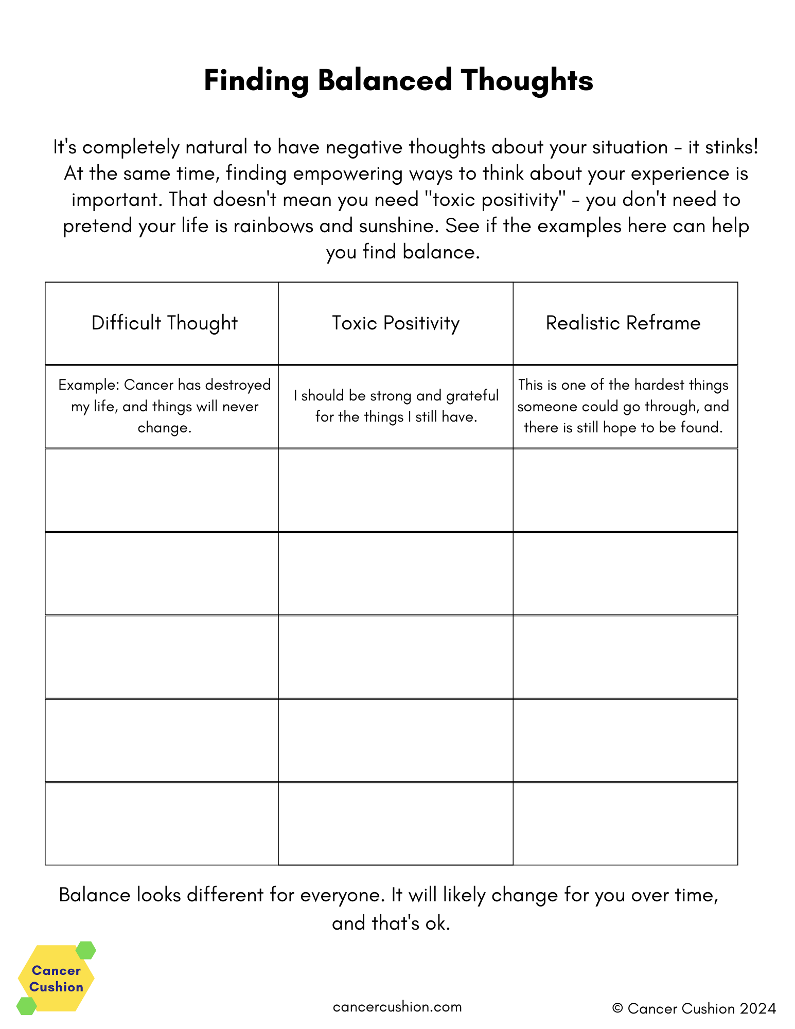 A lot of difficult thoughts come up after being diagnosed with cancer. You can learn about some ways to approach them here.